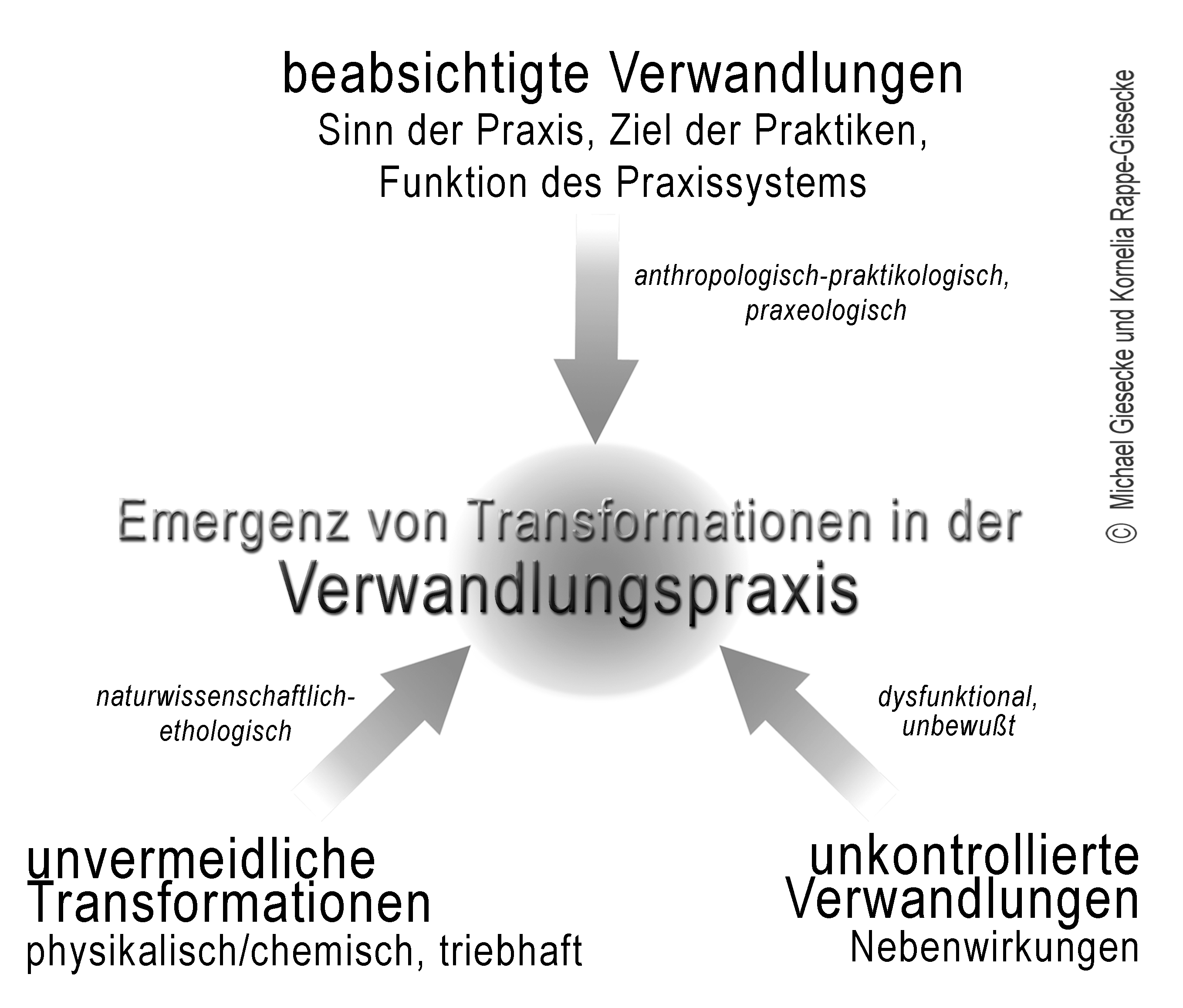 Dabei entstehen gewünscht Ergebnisse, aber meist auch unbeabsichtigte Nebenwirkungen, oder unvermeidliche weitere Transformationen, mit denen wir uns auseinandersetzen müssen, um den Sinn unsere Praxis zu sichern. Es kann sich dabei um unvermeidliches, oder um unbeabsichtigtes oder beabsichtigtes Verwandeln handeln